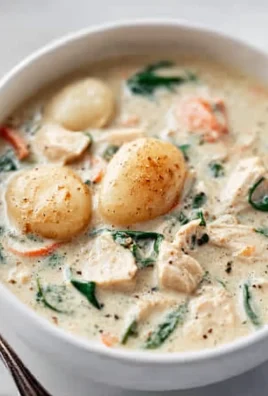 You’ve now mastered the art of creating the beloved Olive Garden Chicken Gnocchi Soup right in your own kitchen! This comforting and creamy soup, packed with tender chicken, pillowy gnocchi, and vibrant spinach, is sure to become a family favorite. The beautiful balance of savory flavors and satisfying textures makes it perfect for a cozy weeknight dinner or a special gathering. Serve it piping hot with crusty bread for dipping, or pair it with a light side salad for a complete meal. Don’t hesitate to get creative with variations; consider adding other vegetables like carrots or peas, or even a hint of nutmeg for an extra layer of warmth.
