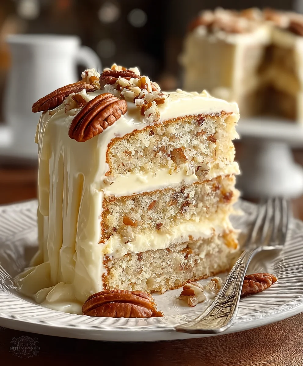 White Chocolate Pecan Cake-Decadent Layered Dessert